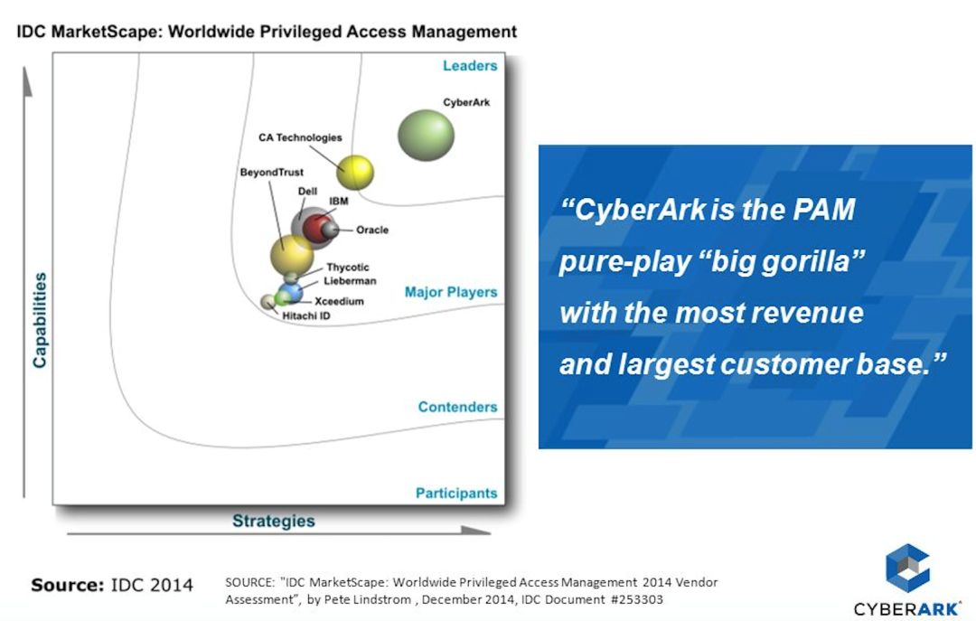 CyberArk是一家以色列公司,1999年成立,2014年上市,同年被IDC評(píng)為“特權(quán)訪問(wèn)管理”領(lǐng)域的領(lǐng)導(dǎo)者!2018年被Gartner評(píng)為“特權(quán)訪問(wèn)管理”領(lǐng)域的“領(lǐng)導(dǎo)者”!Cy2018年被Gartner評(píng)為“特權(quán)訪問(wèn)管理”領(lǐng)域的“領(lǐng)導(dǎo)者”!看圖——berArk是一家以色列公司,1999年成立,2014年上市,同年被IDC評(píng)為“特權(quán)訪問(wèn)管理”領(lǐng)域的領(lǐng)導(dǎo)者!CyberArk是一家以色列公司,1999年成立,2014年上市,同年被IDC評(píng)為“特權(quán)訪問(wèn)管理”領(lǐng)域的領(lǐng)導(dǎo)者!