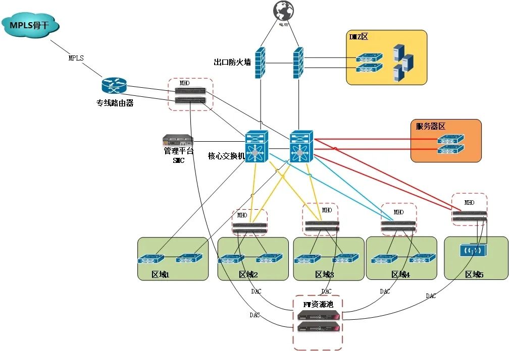1.部署架構(gòu):原來的部署架構(gòu),防火墻的放置數(shù)量是規(guī)劃好的,如果想增加防火墻的數(shù)量,需要重新規(guī)劃架構(gòu)。