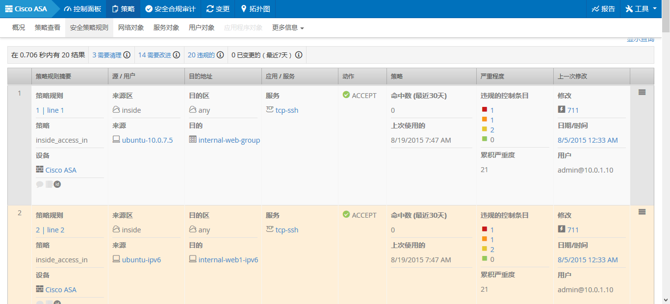 安全策略利用率分析: