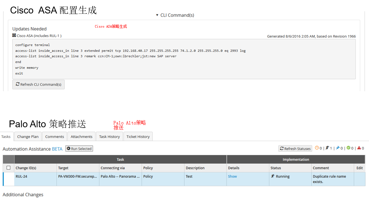 防火墻策略變更“預(yù)”檢查及變更流程管理: