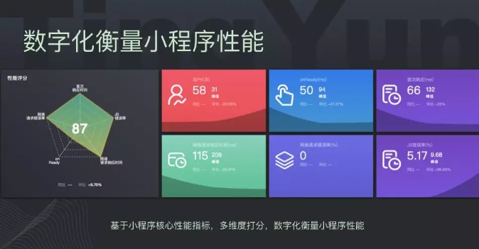 聽云作為國內(nèi)領(lǐng)先的應(yīng)用性能管理服務(wù)提供商,專注于企業(yè)應(yīng)用性能管理的服務(wù)與提升,此次聽云首次推出的小程序應(yīng)用性能監(jiān)控解決方案,將專注于小程序的性能監(jiān)控與優(yōu)化,實時監(jiān)控、發(fā)現(xiàn)小程序的網(wǎng)絡(luò)請求錯誤、JS錯誤、頁面延時等造成用戶體驗不好的問題,并指導(dǎo)快速定位問題根源所在?;谛〕绦蚝诵男阅苤笜?biāo)來進行多維度打分,從而對小程序的性能問題進行可視化和數(shù)字化。