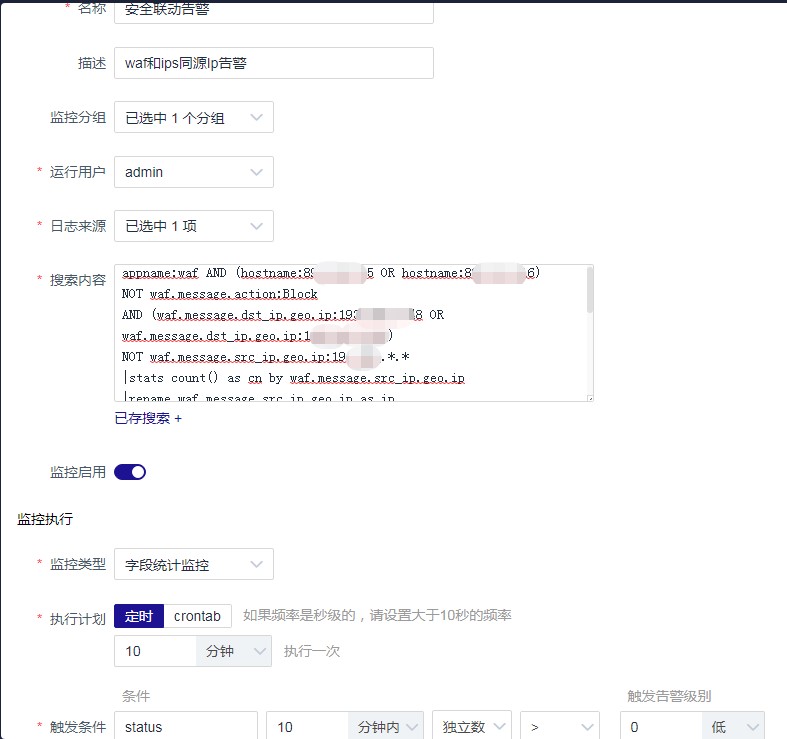 針對有可疑攻擊的安全事件,可指定時間,指定多臺安全設備顯示同一攻擊源IP的安全事件,對于相關源IP進行告警,能有效排除誤報,確認為真實攻擊。此番操作要求為同一區(qū)域內的相關設備,另外還要排除客戶給出的可信地址,然后對各設備的可疑源地址進行匹配。