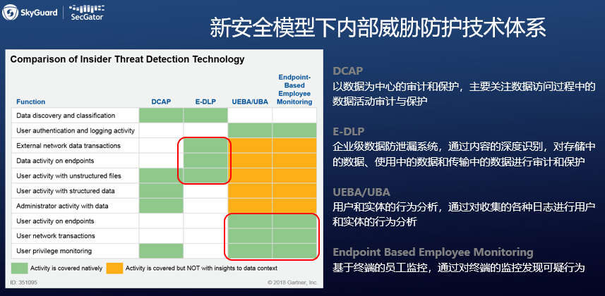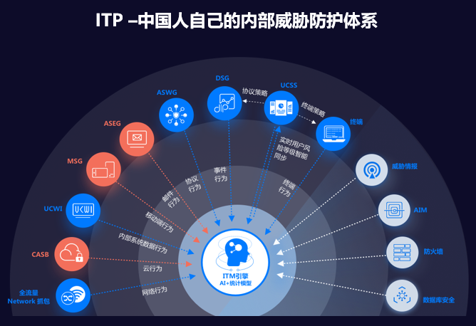 天空衛(wèi)士?jī)?nèi)部威脅防護(hù)(ITP)體系通過(guò)長(zhǎng)期持續(xù)對(duì)內(nèi)部人員的行為進(jìn)行跟蹤,結(jié)合網(wǎng)絡(luò)威脅分析、安全事件分析、終端異常行為分析、全網(wǎng)絡(luò)流量分析以及威脅情報(bào)等核心技術(shù),通過(guò)人工智能及大數(shù)據(jù)分析手段,并突破傳統(tǒng)UEBA無(wú)法感知內(nèi)容的短板,為企業(yè)核心數(shù)據(jù)資產(chǎn)提供智能化的全方位安全防護(hù)手段。