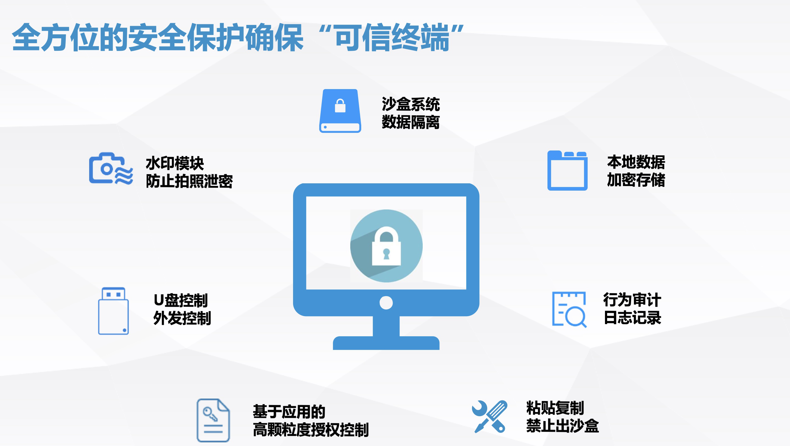 通過<身份認(rèn)證中心-終端管理中心-數(shù)據(jù)防護(hù)中心>三位一體聯(lián)動(dòng)的概念,有效幫助用戶實(shí)現(xiàn)安全可控的遠(yuǎn)程訪問。